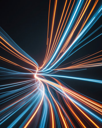 Dynamic light lines create a vibrant texture on a dark background with subtle contrast