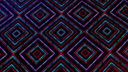Animated light shinning red and blue dots and stars square shapes background. bright shinning colored dots and stars with 3D.