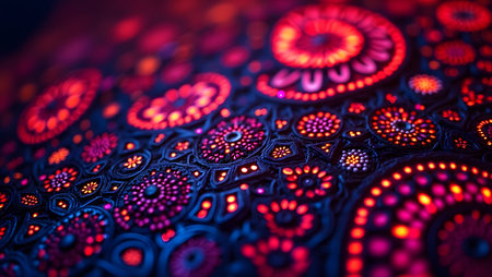 Glowing circular patterns on black