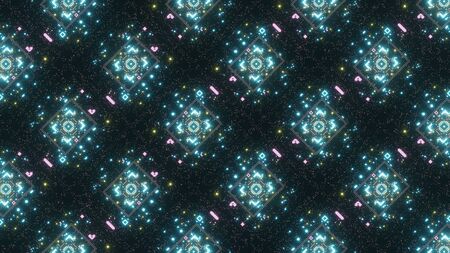 3d Rendering Abstract colorful futuristic background bright neon color. Digital future, fantasy. Geometric design, Mosaic kaleidoscope, geometric Pattern. light effects. Symmetry and reflection