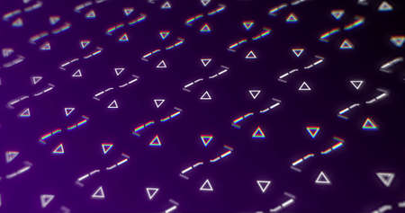 Image of repeatable shapes moving on violet background. Colour, shapes, movement and abstraction concept digitally generated image.
