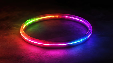 A stunning neon ring featuring vibrant colors set against a dark surface. This image showcases modern design and creative aesthetics, ideal for technology and artistic themes.