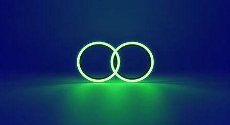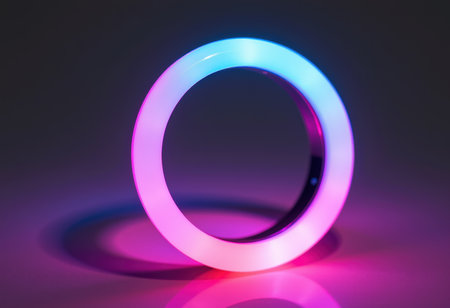 This image features a vibrant neon ring on a dark background, showcasing smooth surfaces and soft glow effects that create a modern, artistic aesthetic.