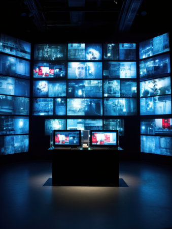 monitoring security digital wall illustration feed high, definition clear, detailed view monitoring security digital wall