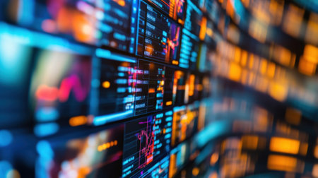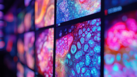 Vibrant digital display panels illustrating data visualization