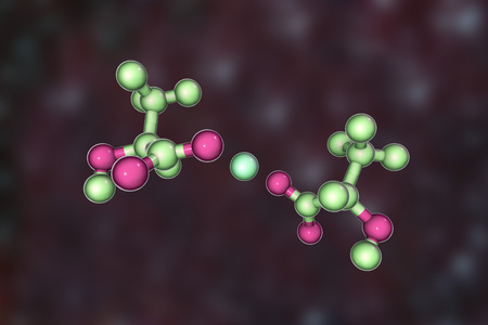 Calcium lactate molecule, 3D illustration, it is used in food industry as food additive E327 and as medication