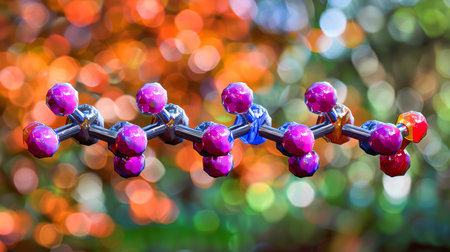 Vibrant molecular structure showcasing interconnected atoms with glowing colors. Perfect for science, chemistry, and technology-related projects or educational content.