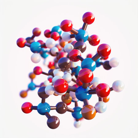 Colorful molecular structure model illustrating the bonding between atoms