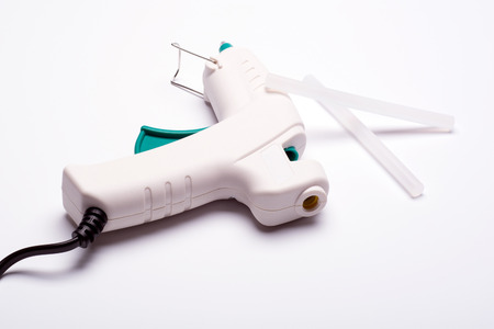 Glue gun on a white background. Electric glue gun close-up on a white background