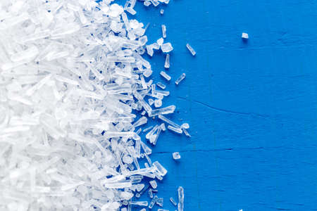 salt, monosodium glutamate on blue background