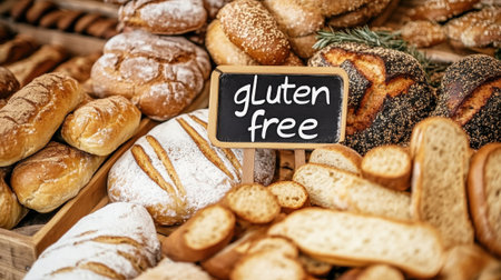 Gluten Free Sign on Bread in a Bakery. High quality photo