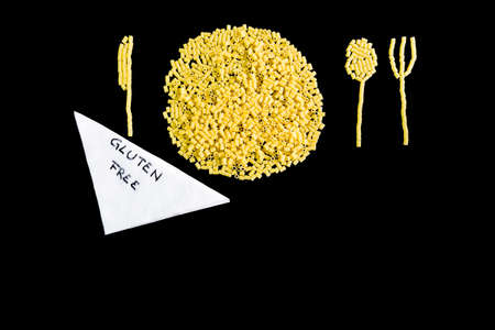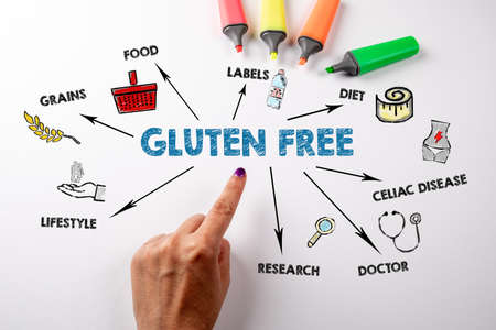 GLUTEN FREE. Grains, food, celiac disease, research and lifestyle concept. Chart with keywords and icons
