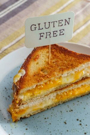 Gluten-free American grilled cheese sandwich on marble kitchen table