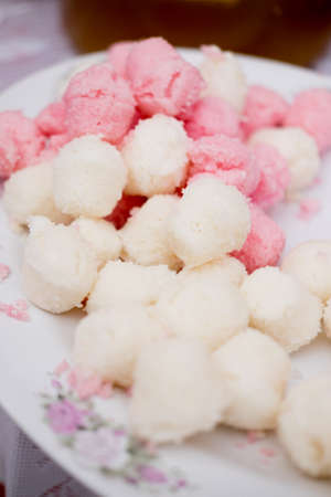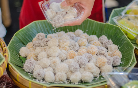 dumplings in coconut cream shape is spherical and colorful. Prepare to boil.