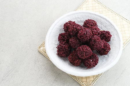 Bowl sized glutinous rice balls with goji berry and sesame ingredients