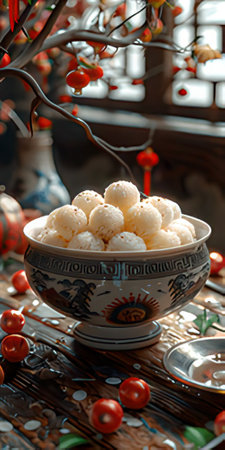 A bowl of delicious Yuanxiao on the warm table