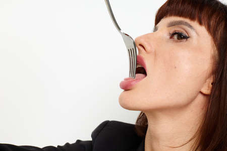 attractive woman knife and fork in hands emotions posing Lifestyle unaltered