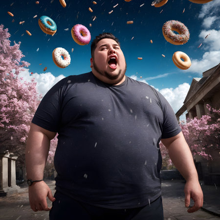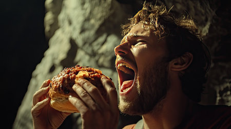 A man with a big mouth and a lot of food, AI