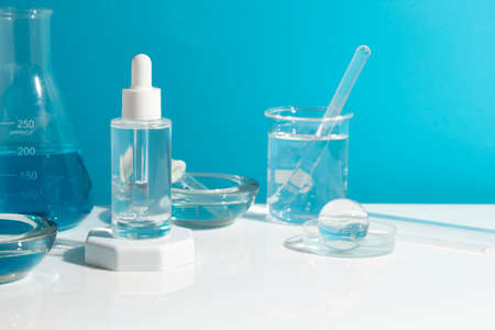 Noxious additives in cosmetics. Laboratory with chemical substances.
