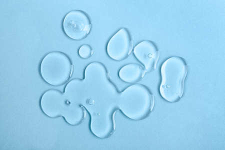 Transparent gel in tube. Serum skincare product. Moisturizer jelly hair conditioner. Emulsion cosmetics. Sanitizer smear. Copyspace. Hyaluronic face fluid. Water wave cream. Silver and blue
