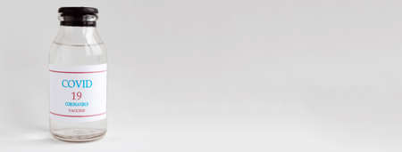 Coronavirus vaccine bottle. Prevention and treatment from corona virus infection. Medicine infectious concept. Copy space for the text