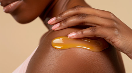 Applying a nourishing oil serum on shoulder for skincare routine at home
