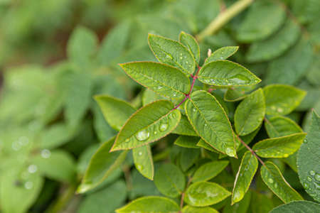 Blurred image of beautiful green leaves with dew drops. natural background.