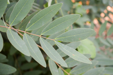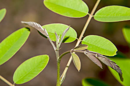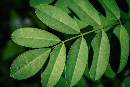 Desert false indigo, Amorpha fruticosa fruits and leaves closeup selective focus