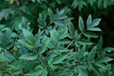 Natural dark green foliage of forest vegetation as a natural background. Vegetative background of leaves and plants.