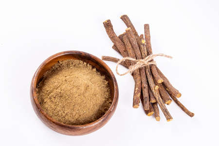Licorice medicinal plant root, on white background - Glycyrrhiza glabra