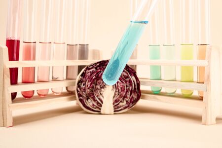 Chemical Laboratory of the Food supply . Food in laboratory, dna modify .Toning image