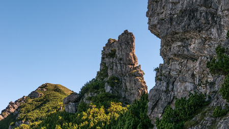 Morning in the mountains with picturesque rocks