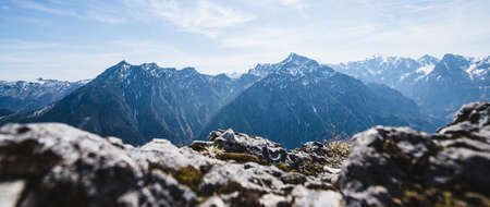 High alpine mountains with snow in Germany and blue beautiful sky