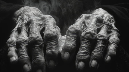 Poignant close-up of aged, wrinkled hands telling a story of a lifetime's work