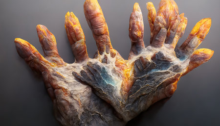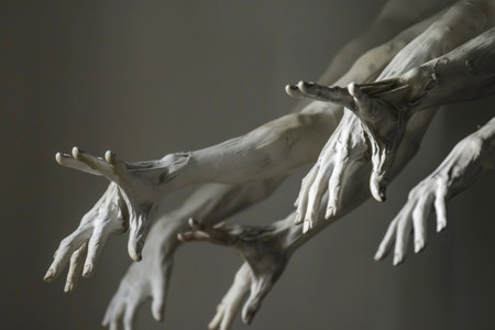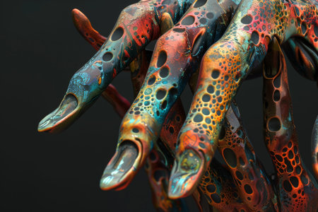 Elongated fingers with unique, abstract shapes --ar 3:2 Job ID: fb61d9a5-1f4c-4202-ab6a-fd2c82aa3a92