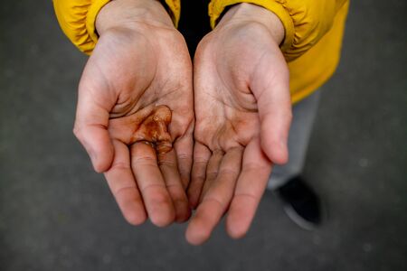 Dirty hands of a teenager. Unsanitary conditions. Diseases and epidemics. Pollution. Hygiene. High quality photo