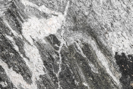 Closeup of black and white natural stone surface. Texture of a polished crystalline rock as an abstract background