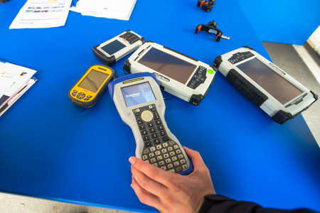 ESSEN, GERMANY - 08 OCTOBER 2013. Cartography, mapping, survey exhibition Intergeo 2013. Rugded control computers by Carlson on stand on October 08, 2013 in Essen, Germany.