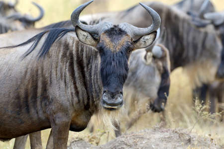 Wildebeest (Connochaetes taurinus) in the savannah of Africa