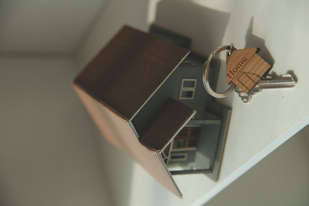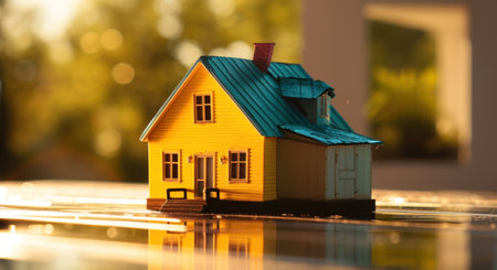 Little miniature house on blurred background, New home, Real Estate, Mortgage loan,architectural concept with Copy space