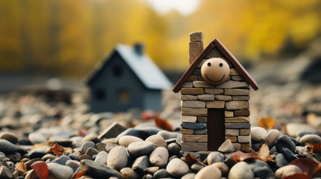 Layout depicting the proverb Home is where the heart is. Selective focus points. Blurred background