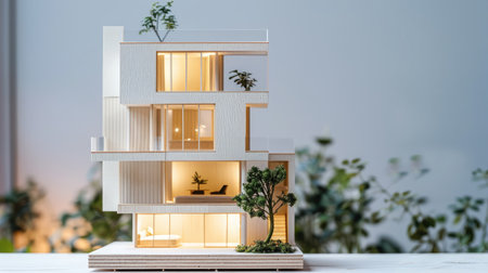 Minimalist townhouse exterior showcasing clean lines and neutral tones, modern design. generated by ai