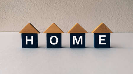 Wooden block word with HOME. The concept of buying and selling real estate, rental housing, Home protection, Home protection