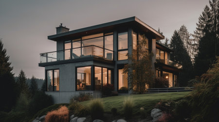 Generative AI : Big luxury house at dusk night in suburbs of Vancouver Canada