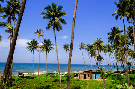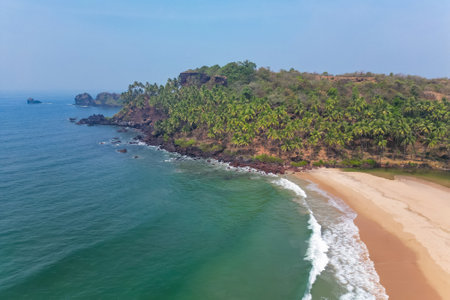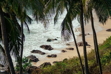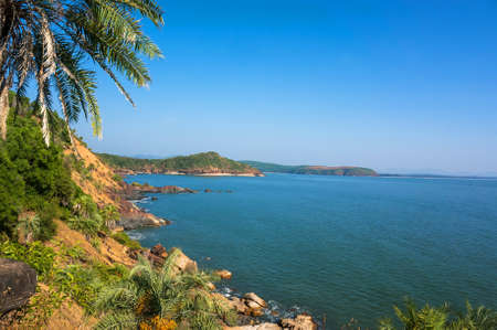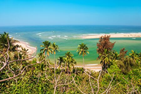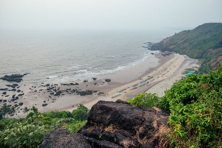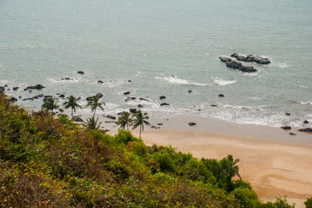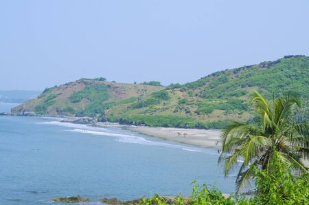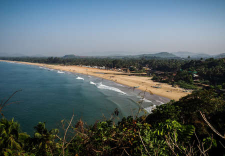 Beauty Arambol beach landscape. Panorama, top view. Goa state, India.