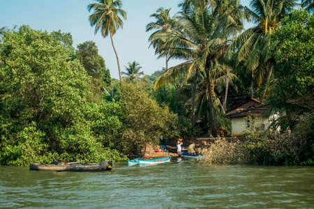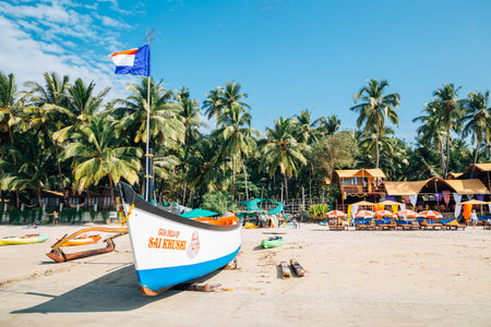 Goa, India - December 21, 2017 : Palolem beach with tropical palm trees