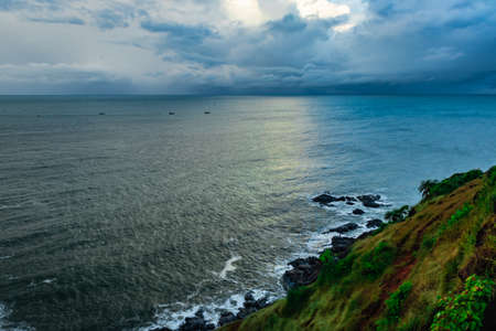 sea horizon view with dramatic cloud from mountain top image is taken at gokarna karnataka india.