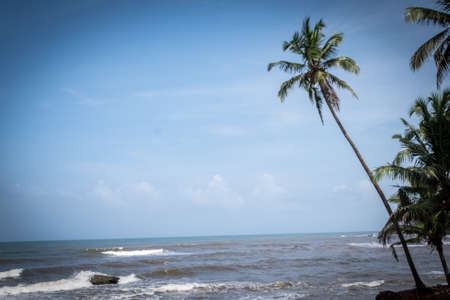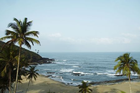 Palma and the beach with stone on sea background. Paradise beach Gokarna India.