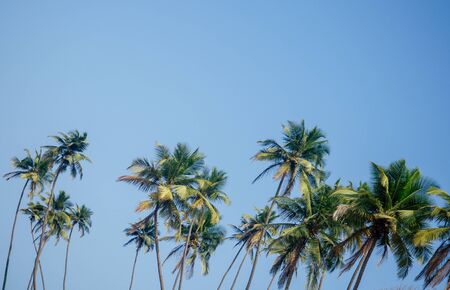 Beauty coconut palms in Arambol village in north Goa in India at night