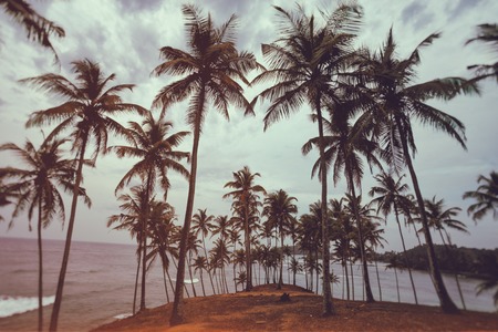 Coconut palm trees on the beach in Sri Lanka, Asia